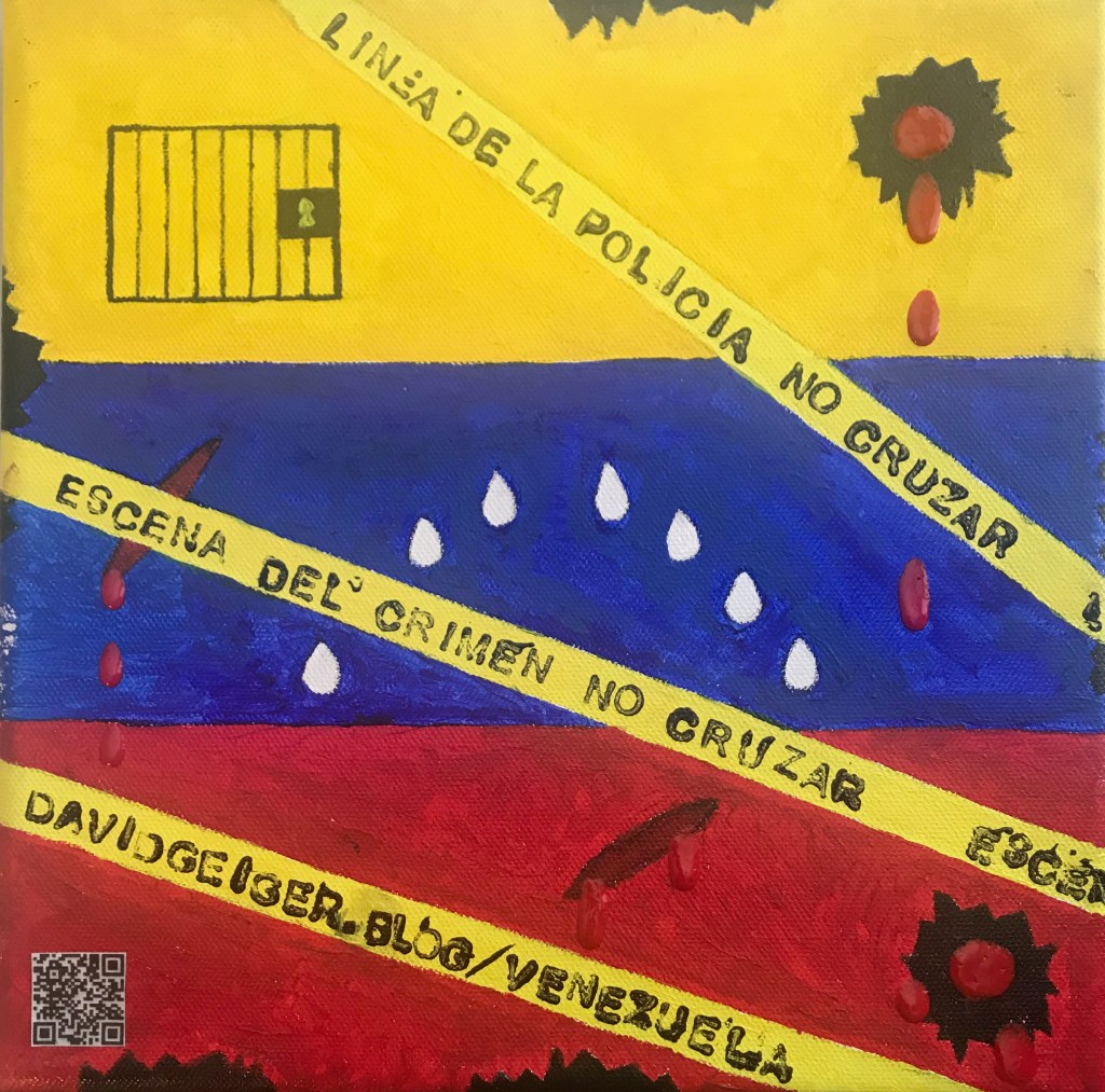 This page is the target of the painting “Venezuela is Bleeding” and I would like to use it to provide truthful and accurate information about the situation in Venezuela. The conditions there are horrible in general, but to read and learn about the conditions for political (and all) prisoners held in Venezuelan prisons and jails would bring anyone to tears.